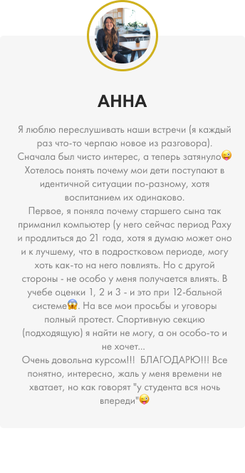 Вы разобрались с тем, какую миссию выбрала душа ребенка, приходя на эту планету. Поняли сильные и слабые стороны, куда водить, чем заниматься, как найти подход и сохранить доверительные отношения. А самое главное - заложили прочный и качественный фундамент на будущее, при этом оставаясь счастливой и гармоничной!